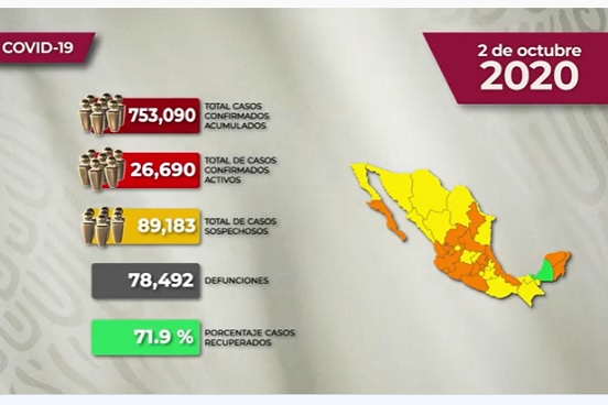 En cuanto a la actualización de las cifras generales de la epidemia en México, José Luis Alomía, director de Epidemiología de la Secretaría de Salud (Ssa), señaló que hoy se registraron 753 mil 90 casos confirmados -4 mil 775 más con respecto al jueves-, así como 78 mil 492 fallecimientos, un alza de 414en comparación con el día anterior.