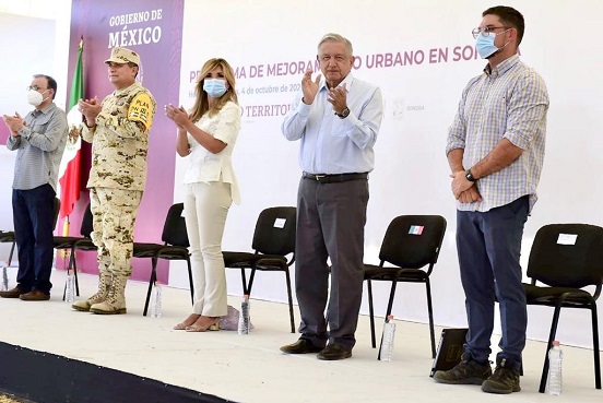 El mandatario resaltó que en esta gira, que comenzó desde el viernes, ha estado acompañado de los secretarios de la Defensa Nacional y Marina, Luis Cresencio Sandoval y José Rafael Ojeda Durán, así como el nativo Alfonso Durazo.