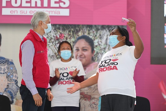El Gobernador Alfredo Del Mazo Maza señaló que debido a la emergencia sanitaria, muchas familias requieren ayuda ante la falta de ingresos por la pérdida de empleos y el cierre de negocios, por ello, enfatizó que el Gobierno estatal les ofrece respaldo con diversas estrategias, como el Salario rosa, un recurso permanente que apoya la economía de las familias.