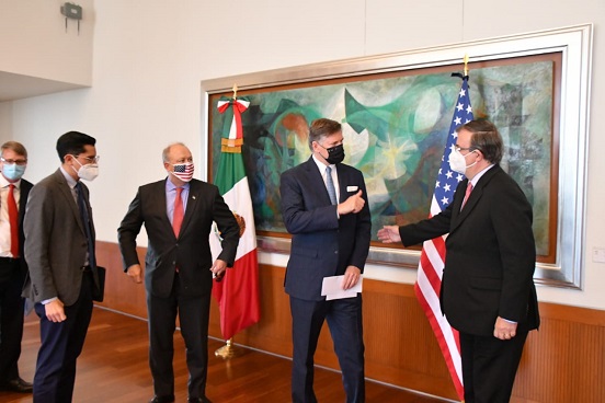 Además, durante la conversación los funcionarios abordaron nuevos mecanismos para aprovechar el nuevo tratado México Estados Unidos, Canadá (T-MEC) así como el tema de seguridad.