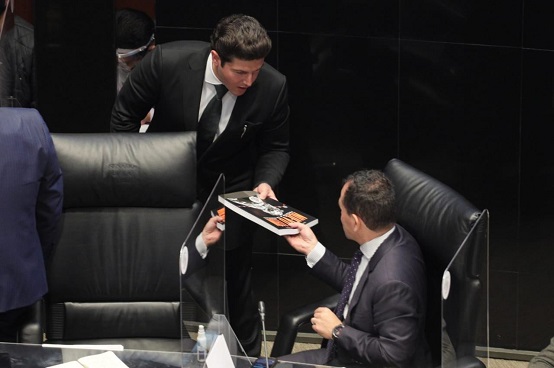 El legislador obsequió su tercer libro “Nuevo León Frente a la Pandemia” al funcionario, en el cual explica la viabilidad política, jurídica y financiera para modificar el convenio.