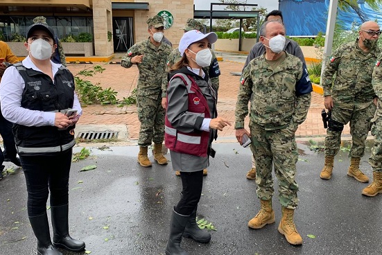 La funcionaria señaló “a pesar de que el meteoro cambió su intensidad a Categoría 2, debemos estar pendientes de los mensajes de las autoridades, ya que el oleaje y marea de tormenta representan aún una amenaza para la vida. Y podría causar daños potencialmente catastróficos debido a la velocidad del viento”.