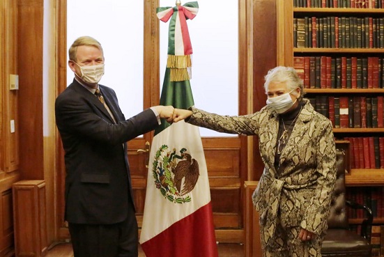 La titular de la secretaría de Gobernación (Segob) Olga Sánchez Cordero, sostuvo un encuentro con el embajador de Canadá, Graeme C. Clark, donde abordaron el tema de erradicar las violencias contra las niñas y mujeres.