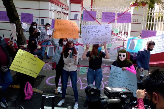 En la calle Chihuahua –la llamada casa de transición– de la colonia Roma, un grupo de mujeres se manifestaron en favor del feminismo.