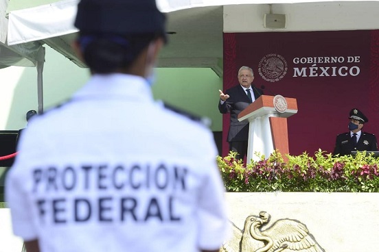“Esta es una oportunidad para relanzar al Servicio de Protección Federal (SPF), para que cumpla debidamente con la función para la que fue creada, y que por tropiezos burocráticos no lo había cumplido, pese a que el SPF tiene ya varios años de creación es hasta ahora en que el crecimiento ha sido verdaderamente satisfactorio y, por orden del señor Presidente, deberá crecer mucho más aún en los próximos años”, aseguró el secretario de Seguridad y Protección Ciudadana, Alfonso Durazo Montaño.