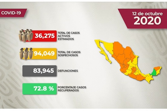 Recordó que hoy entró en vigencia el cambio en el semáforo de riesgo de Covid-19, por el cual 17 entidades están en color naranja (riesgo alto), 14 en amarillo (medio) y solo Campeche está en el color verde, es decir con riesgo bajo de transmisión del coronavirus.