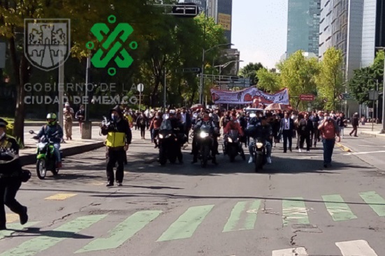 A través de su cuenta de Twitter el Centro de Orientación Vial de la Secretaría de Seguridad Ciudadana de la Ciudad de México informa que los inconformes avanzan sobre los carriles laterales de Av. Paseo de la Reforma hacía Insurgentes.