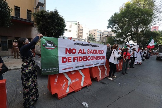 Integrantes del Frente Nacional Anti- AMLO (Frena) realizaron una manifestación en inmediaciones del Senado de la República, contra la eliminación de los fideicomisos.