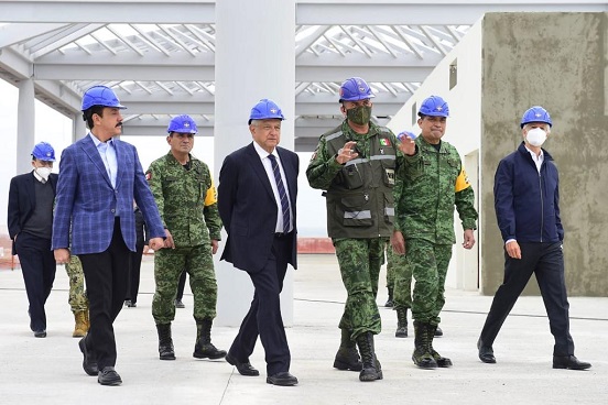 Asimismo, se presentó el avance que tiene la construcción de la unidad habitacional para militares y sus familias, los cuales se realizan de manera paralela al desarrollo de las terminales civil y militar.