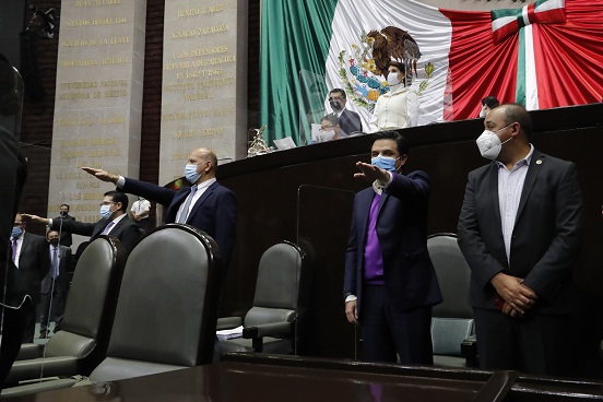 La presidenta de la Cámara de Diputados, Dulce María Sauri Riancho, tomó la protesta de decir verdad a los funcionarios del sector salud, Jorge Alcocer Varela, Zoé Robledo Aburto, Luis Antonio Ramírez Pineda y Juan Antonio Ferrer Aguilar, respectivamente.