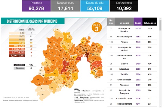 Edoméx suma 90,278 casos Covid-19 y 10,392 defunciones, confirman no existe rebrote