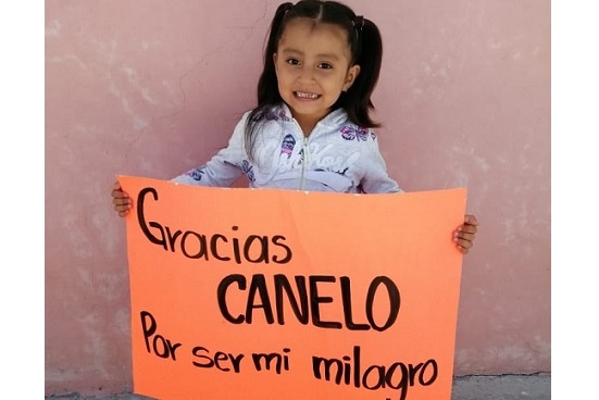 A través de las redes sociales, la Fundación, que se encuentra en Puebla, publicó una foto de la niña con una pancarta que dice “Gracias Canelo por se mi milagro”. Posteriormente, el boxeador respondió “Con mucho amor”.