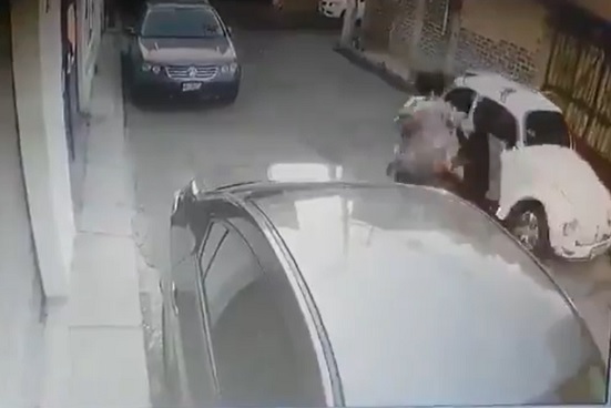 Asimismo, se aprecia un automóvil tipo Nissan Tsuru con cromática de taxi segundos antes de que los captores aparezcan en la imagen.