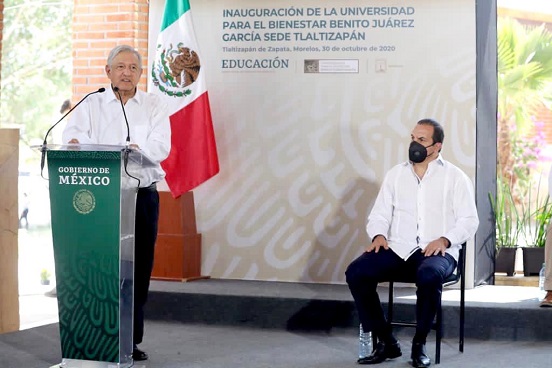Tlaltizapán, Mor. Al inaugurar un plantel de la Universidad para el Bienestar “Benito Juárez García” en este municipio, el presidente Andrés Manuel López Obrador anunció que el próximo año aumentará el monto de las pensiones para adultos mayores y para menores con discapacidad, conforme a la inflación, y las becas para Jóvenes Construyendo el futuro también, por el incremento al salario mínimo.