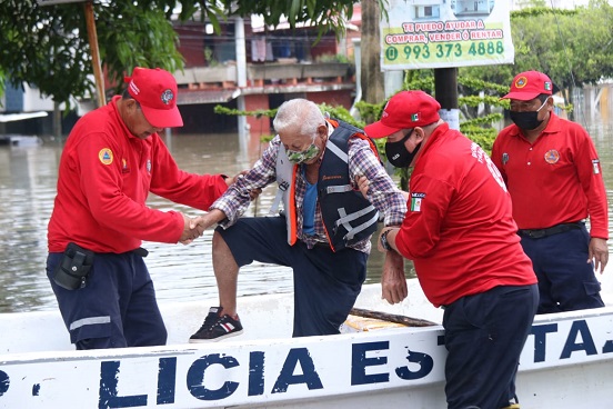 También, un total de 14 refugios temporales activados: 12 en Tabasco, 1 en Veracruz y 1 en Yucatán; así como el desplazamiento de 343 personas a refugios temporales: 325 en Tabasco y 18 en Veracruz.