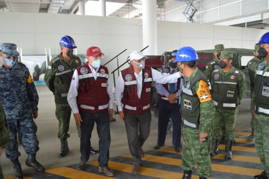 Arganis Díaz Leal observó las labores en ejecución de los frentes de trabajo en la pista central, el edificio terminal, el eje troncal de circulación, estacionamiento y torre de control, entre otros y constató el buen curso de la obra militar.