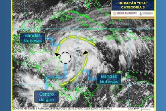 “Los datos satelitales indican que Eta continúa fortaleciéndose rápidamente (…) El fortalecimiento continuo es esperado hasta que Eta llegue a la costa de Nicaragua”, añadió.