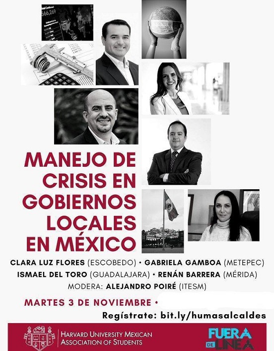 La presidenta municipal, participó junto con sus homólogos de Escobedo, Nuevo León; Guadalajara, Jalisco y Mérida, Yucatán; Clara Luz Flores, Ismael del Toro y Renán Barrera, respectivamente, en el Conversatorio de Manejo de Crisis en Gobiernos Locales de México, organizado por la Asociación de estudiantes de México de la Universidad de Harvard.