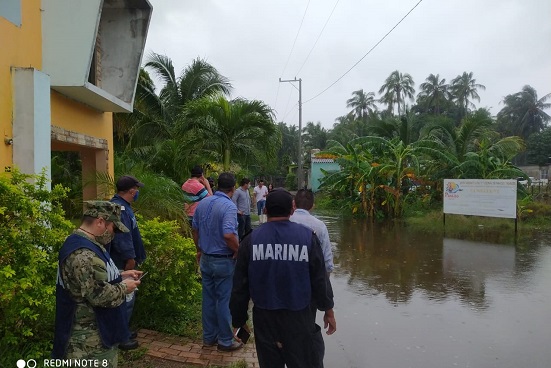 Es por lo anterior, que personal naval participó con el llenado de costalillas de arena, que fueron transportadas y colocadas en las zonas más anegadas, esto, con la finalidad de disminuir riesgos en la localidad.