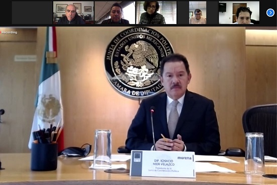 La Junta de Coordinación Política, que preside el diputado Ignacio Mier Velazco, sostuvo una reunión virtual donde se analizó el orden del día y el formato de las sesiones que se llevarán a cabo esta semana de manera presencial y semipresencial en el Recinto Legislativo de San Lázaro.