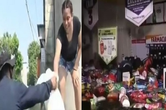 En las imágenes recabadas, las autoridades sacaron producto de primera necesidad de la tienda como agua, suero y alimentos enlatados. Posteriormente, viajaron a los alrededores y entregaron casa por casa algunos productos.