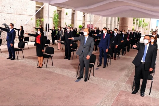 El evento se realizó por videoconferencia y los nuevos juzgadores estuvieron de manera presencial en el patio central del Palacio de Justicia federal de San Lázaro.