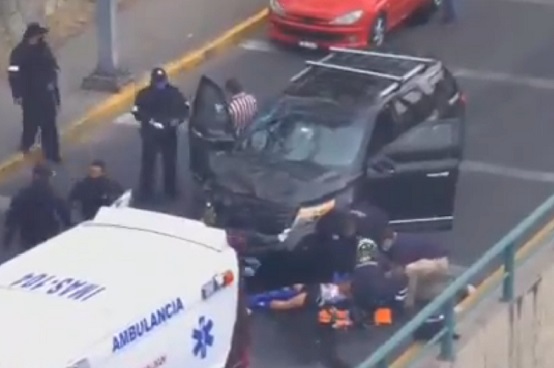 Los sujetos fueron alcanzados por el familiar, quien los atropelló sobre la avenida San Juan Totoltepec. En el percance, un automóvil de color rojo también terminó chocando.