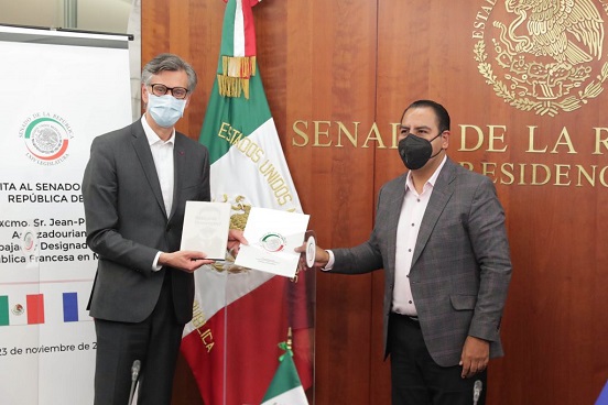 Durante la recepción del embajador designado de Francia en México, Jean-Pierre Asvazadourian, el senador enfatizó que la paz “debe ser el camino a seguir para el desarrollo de nuestros pueblos”.