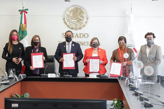 El convenio, firmado por el presidente del Senado, Eduardo Ramírez, y la presidenta de Inmujeres, Nadine Gasman, compromete el esfuerzo de los legisladores para aprobar reformas legales que permitan garantizar el acceso a una vida libre de violencia, acabar con la violencia política y laboral y alcanzar la equidad salarial de las mujeres.