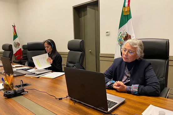La secretaria de Gobernación, Olga Sánchez Cordero, se reunió este día, de forma virtual, con la empresa Newmont, operadora de la mina Peñasquito, para conocer los avances del acuerdo firmado el 11 de junio de 2020, el cual dio por concluidos los trabajos de la mesa de negociación instalada por esta dependencia para resolver las controversias entre ejidatarios de Cedros del municipio de Mazapil, Zacatecas y dicha empresa.