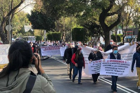 Los secretarios generales seccionales del SNTSA que preside Marco Antonio Garcúa Ayala, se concentraron y protestaron esta mañana frente a Instituto Nacional de Cardiología, en sur de la metrópoli.