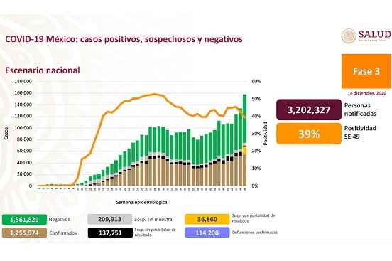 Durante la conferencia de prensa vespertina en Palacio Nacional, señaló que desde el inicio de la pandemia se han notificado 3 millones 202 mil 327 casos de la infección, mientras que de las pruebas de laboratorio realizadas, un millón 561 mil 829 tuvieron resultado negativo al coronavirus.