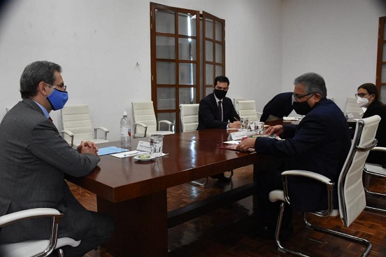 El Secretario de Educación Pública, Esteban Moctezuma Barragán, y el Secretario General del Sindicato Nacional de Trabajadores de la Educación (SNTE), Alfonso Cepeda Salas, sostuvieron una reunión en el edificio sede de la dependencia, para revisar las condiciones del magisterio durante la pandemia, y establecer un regreso seguro ante la apertura de los Centros de Aprendizaje Comunitario.