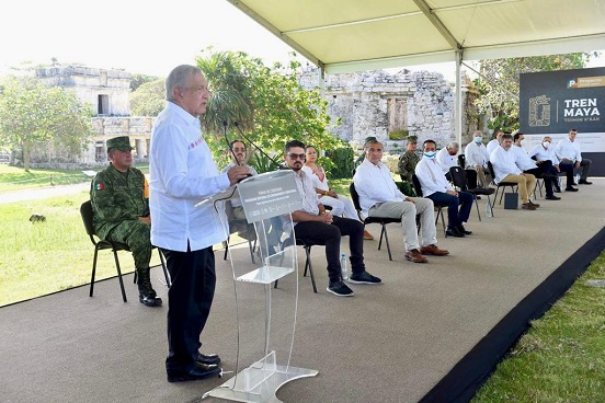 López Obrador llamó que el convenio sea un marco para trabajar de manera coordinada y con honestidad, para cuidar el medio ambiente, el patrimonio cultural y arqueológico, y respetar a las comunidades.