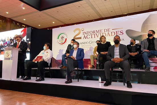 Lo anterior, en el marco de la presentación de su segundo informe de actividades legislativas, al que asistieron el presidente del Senado, Eduardo Ramírez, el coordinador de los senadores de su bancada, Ricardo Monreal, así como legisladores de todos los partidos, como Víctor Oswaldo Fuentes del PAN.