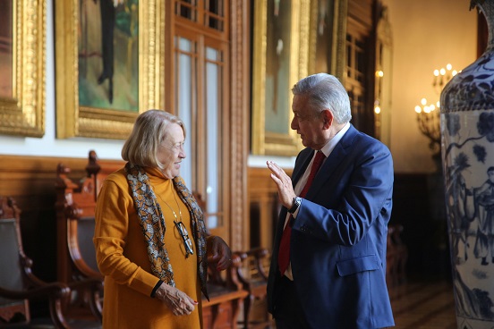 El presidente de la República, Andrés Manuel López Obrador recibió, este miércoles, en su despacho de Palacio Nacional a Lilia Eugenia Rossbach Suárez, diputada al Congreso de la Ciudad de México, con quien recordó la reuniones y encuentros que sostuvo con ella y su esposo, el escritor José María Pérez Gay quien falleció en 2013, y otras personas, precursores del movimiento Morena.