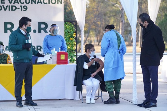 En el acto, que fue transmitido durante la conferencia matutina del presidente Andrés Manuel López Obrador, la primera dosis fue aplicada por la subteniente enfermera Elia Palominos Sánchez, a María del Rosario Lora López, especialista en enfermería quirúrgica, con 26 años de servicio, y que está adscrita al Hospital General Regional No. 2 “El Marqués” del IMSS, donde labora en citado hospital reconvertido para dar atención a pacientes COVID.