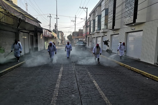 Como una acción más para la protección de la población, durante la pandemia por el Covid19, se realizan jornadas de limpieza y desinfección en espacios públicos y comerciales, informó el presidente municipal, Julio César Serrano González.