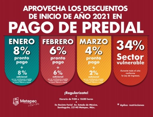 A partir del próximo año, el gobierno de Metepec ofrece a la ciudadanía descuentos especiales para el primer trimestre, favoreciendo así la economía familiar.