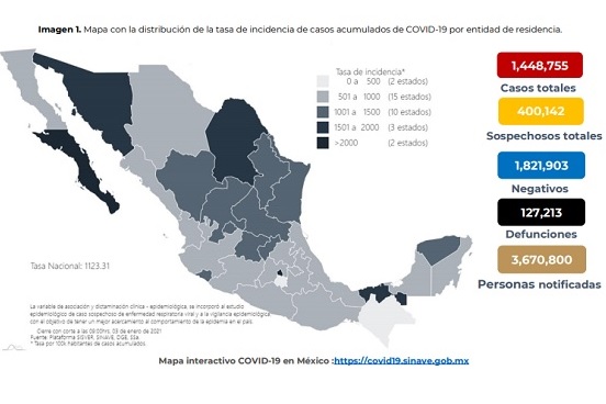En el reporte técnico diario sobre la situación de la pandemia en México, que se dio a conocer la noche de este domingo, se detalla que en las últimas 24 horas se presentaron 362 nuevos decesos, con lo que ya se acumulan 127 mil 213 muertes a causa de la enfermedad en el país.