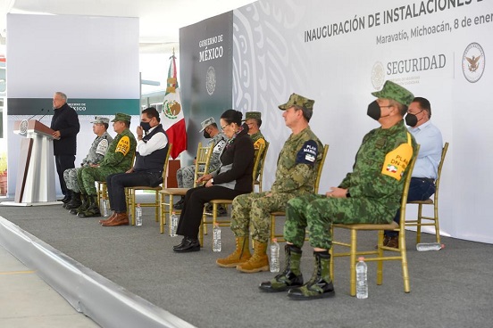 Recordó que Michoacán tiene 22 de esos cuarteles y hay 11 más en construcción, para un total de 33 que garanticen la paz y la seguridad de los habitantes del estado, con la presencia de más de 5 mil elementos. “Tenemos que enfrentar el delito que más ha crecido: el homicidio doloso. Por eso esta gira, en Maravatío y vamos a Zamora en la tarde, allá es donde se ha desbordado más”, reconoció.