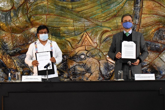 Durante la firma del instrumento, entre el Secretario de Educación Pública, Esteban Moctezuma Barragán y el Titular del Instituto Nacional de Pueblos Indígenas (INPI), Adelfo Regino Montes, el Titular de la SEP recordó que, por siglos, los integrantes de los pueblos originarios han sido sistemáticamente marginados, por lo que los esfuerzos que se realizan para cerrar esa brecha, tienen que estar fundamentados en un principio básico civilizatorio que es la educación.