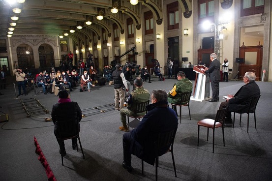 Sana distancia, sanitización previa de los espacios, uso de cubrebocas y realización de pruebas periódicas, forman parte de las medidas para evitar contagios de COVID-19 en las reuniones a las que asiste el presidente Andrés Manuel López Obrador.