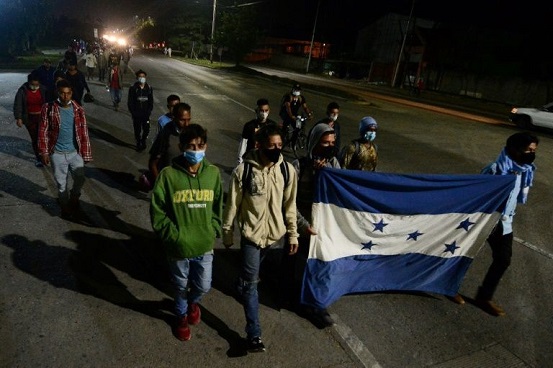 Unos 300 hondureños partieron este jueves hacia Estados Unidos, adelantándose a una masiva caravana de migrantes convocada para el viernes, en busca de mejores condiciones de vida y con la esperanza de que el próximo presidente, Joe Biden, los acoja.