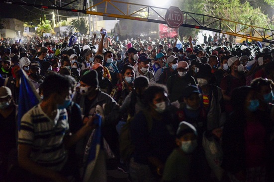 Al menos unos 4 mil 500 migrantes que viajan a pie desde Honduras rumbo a Estados Unidos lograron sortear su primer escollo, la línea de frontera con Guatemala, tras romper un cerco policial a gritos de “queremos pasar”, y mantienen vivo el sueño de una mejor vida bajo el gobierno del próximo presidente Joe Biden.