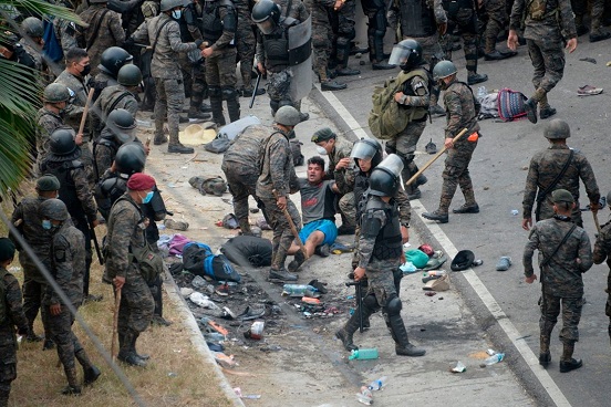 “Estamos viendo que esta gente que se sumó a esta caravana realmente está en una situación totalmente irregular y muy difícil de manejar. Sin embargo, tenemos la coordinación con PNC [Policía Nacional Civil], el Ejército y todas las instituciones de apoyo”, afirmó Guillermo Díaz, director del Instituto Guatemalteco de Migración. El eufemismo choca con las escenas de represión que se vieron en los alrededores del kilómetro 177 de la vía que cruza el Departamento de Chiquimula, en Vado Hondo, según los vídeos difundidos por los reporteros y el personal de organizaciones humanitarias desplegado en en el este del país. “Estamos muy preocupados porque viene otro grupo de la misma proporción que está saliendo de El Florido esta misma mañana”, agregó Díaz en referencia al paso fronterizo entre Honduras y Guatemala por el que ingresaron los migrantes. “Esperamos que la situación se detenga y este flujo termine”.