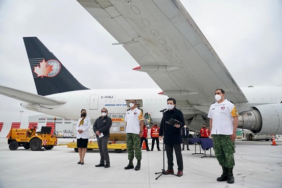 Un lote de cinco mil 850 vacunas anticovid de Pfizer BioNTech arribó, proveniente de Bélgica, tras una escala en Estados Unidos, la mañana de este martes en el Aeropuerto Internacional de Monterrey.