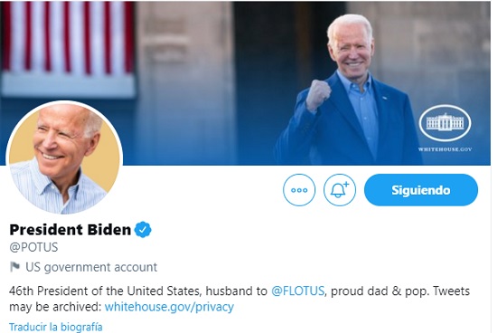 Pero eso será exactamente lo que suceda en las cuentas oficiales del presidente de Estados Unidos. No en la de @realDonaldTrump, que fue vetado de por vida. Sino en las cuentas menos conocidas como @POTUS, @WhiteHouse, @FLOTUS y @VP. (POTUS es el acrónimo oficial en inglés de presidente de Estados Unidos, President of the United States; y FLOTUS se refiere en inglés a la primera dama).