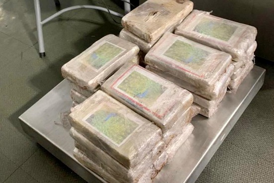 De acuerdo con el reporte oficial, se trata de 25 paquetes envueltos en plástico con la droga procedente de Bogotá, Colombia, los cuales fueron detectados con rayos X.