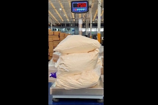 La Administración General de Aduanas (AGA) decomisó 25 kilogramos de clorhidrato de piperidina —precursor químico del fentanilo— en la Aduana de Toluca, Estado de México, procedente de Wuhan, China.